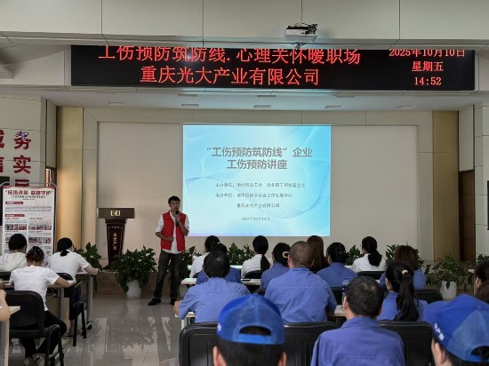 “以前總覺得‘工傷’離自己很遠,聽了講座才知道規(guī)范操作有多重要!”重慶光大產(chǎn)業(yè)有限公司生產(chǎn)車間職工李師傅拿著記滿筆記的講義說。